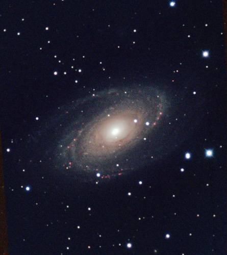 Die M81 hätte noch länger belichtet werden müssen aber aufgrund der Lichterwerbung in