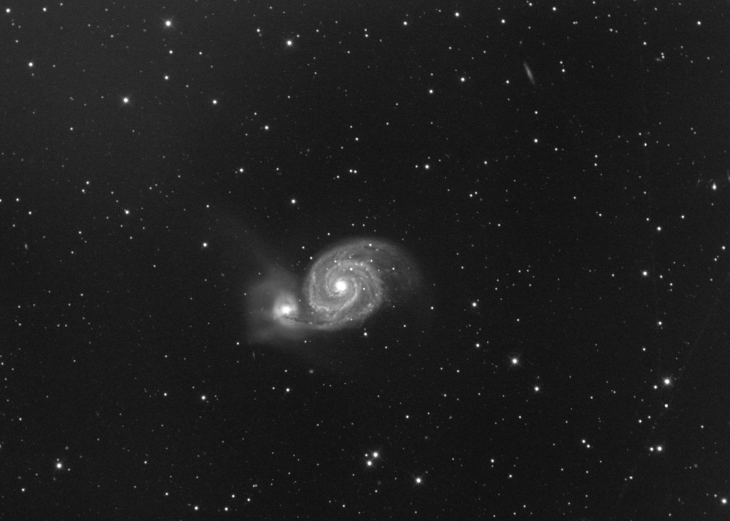 M51 oder Whirlpool-Galaxie ist eine Spiralgalaxie mit deutlich ausgepräger Spiralstuktur
