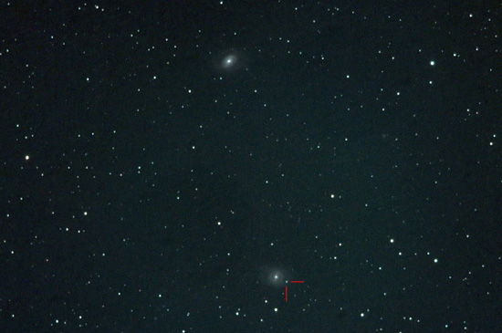 Meine erste Supernova. Leider ging der Guider nicht, sodas ich nur 240 sec belichten konnte. Wenn man bedenkt, was man so alles über die EQ6 im Netz liest, sind die Sterne noch schön rund. :) |