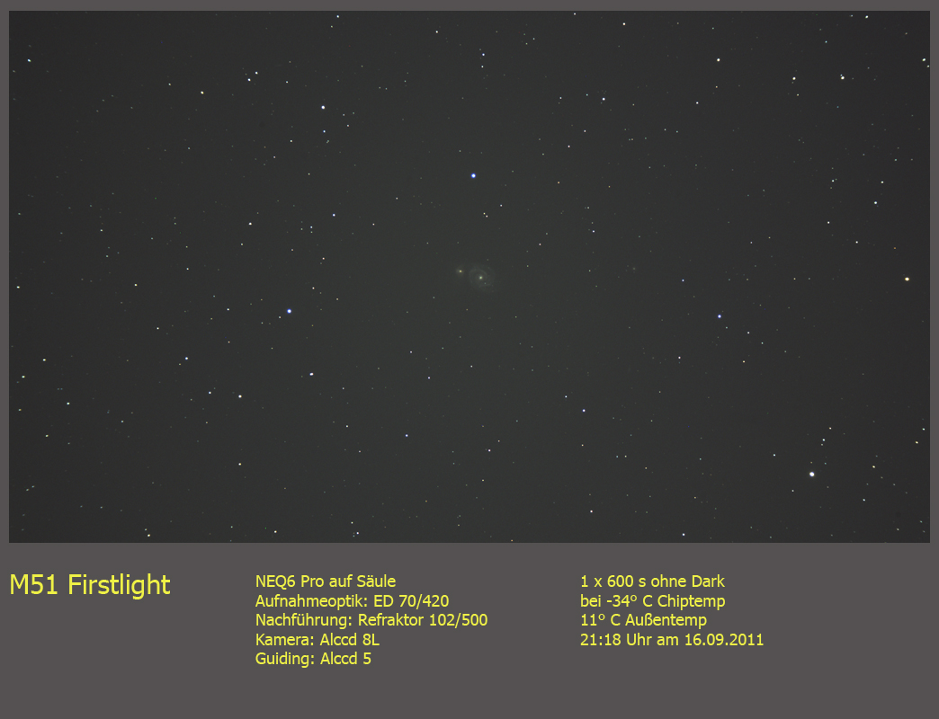 | Bemerkung | In dieser Nacht habe ich den Abstand des Flattener eingestellt. Dabei auch das Firstlight mit dem neuen Refraktor |