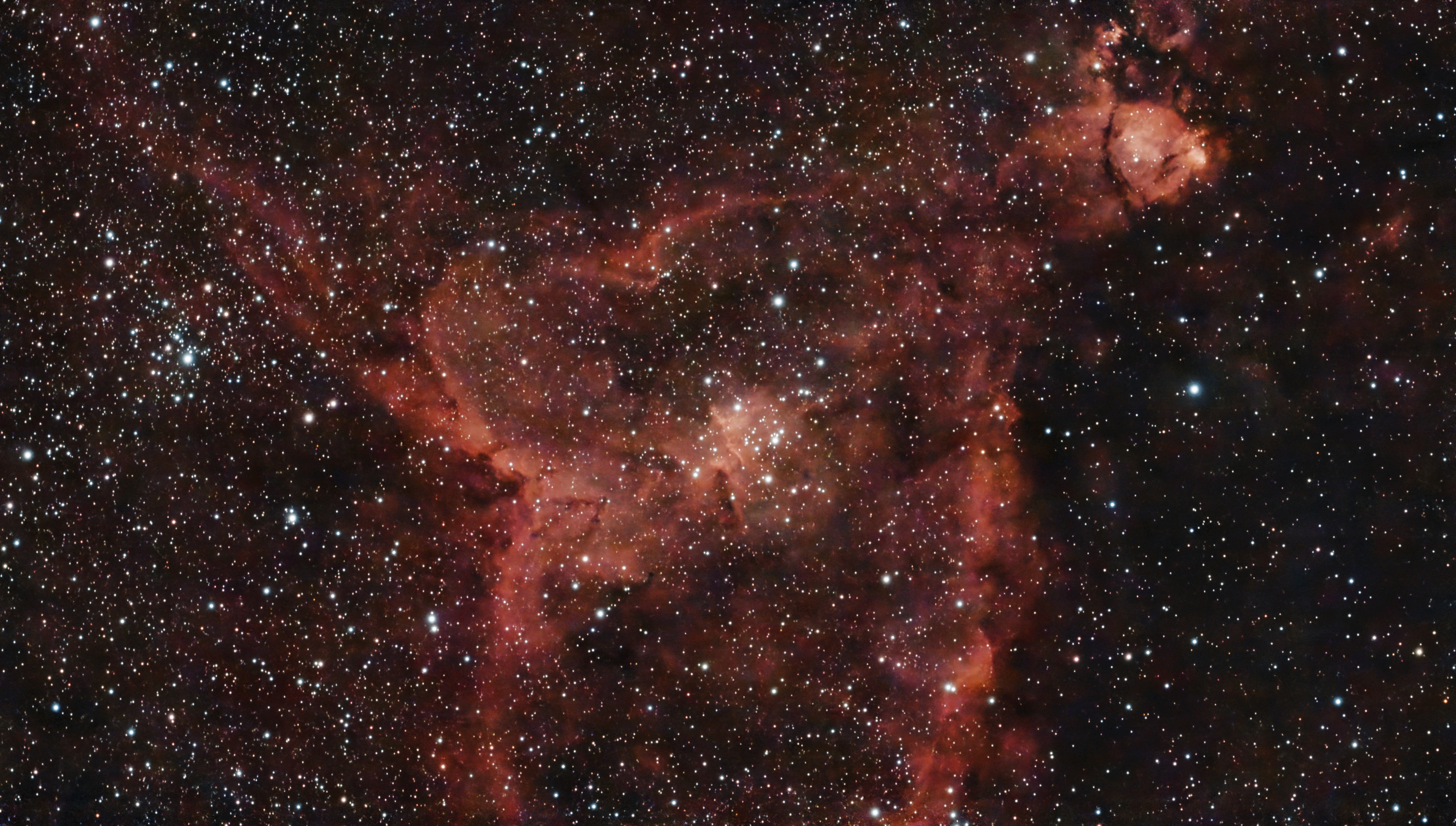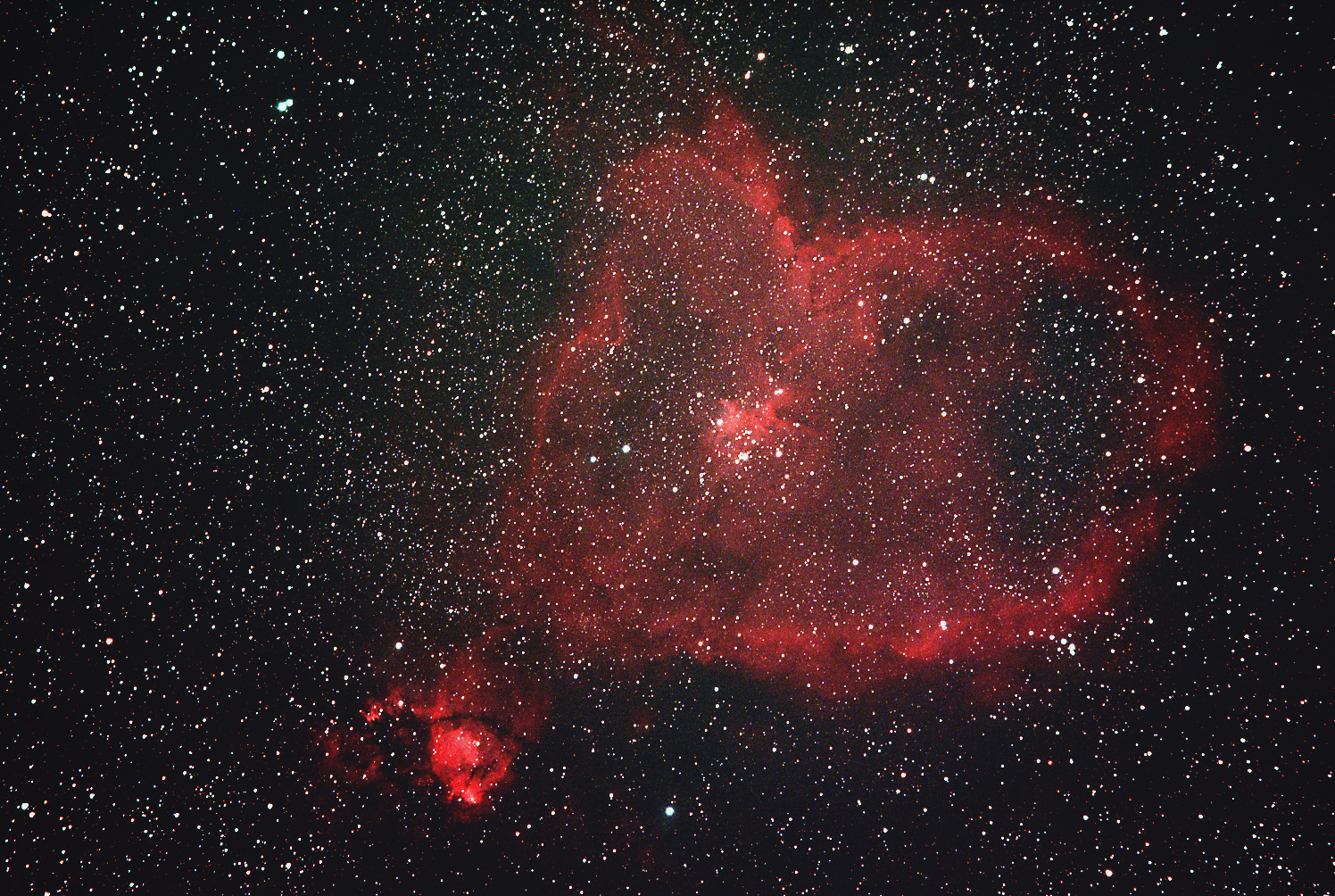 Der Herznebel ist ein Emissionsnebel mit offenem Sternhaufen im Innern und befindet sich